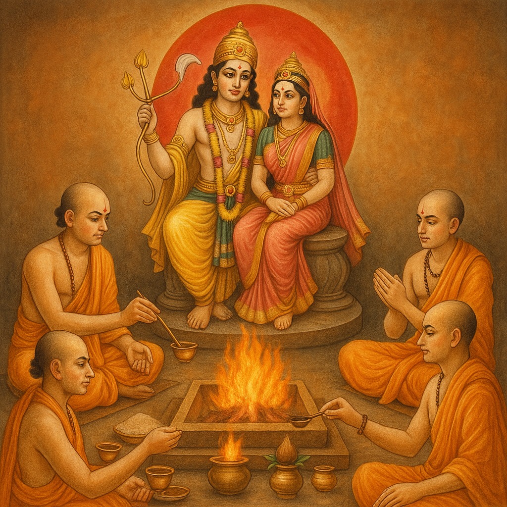 Invocation of Deities: Lord Kamadeva, Goddess Rati, and Lord Shiva-Parvati are invoked through sacred mantras.